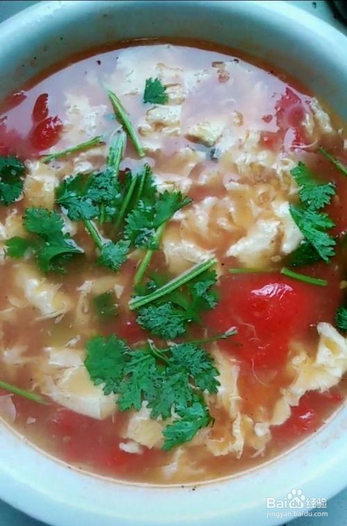 8. 出锅:将煮好的番茄鸡蛋汤盛出,撒上葱花或者香菜点缀,一碗美味的番茄鸡蛋汤就完成了!